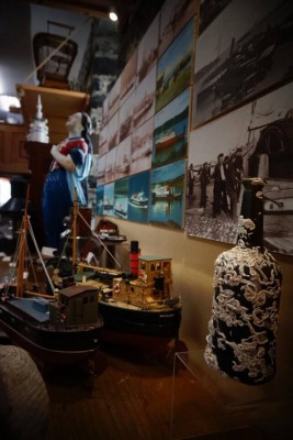 Graveslabs, photos, farming equipment, items from shipwrecks, books.
