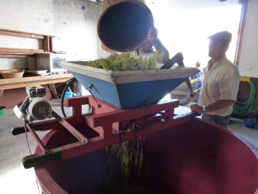 Vindimas. Objectos Associados: Tacho de arame. Colher de pau comprida.
