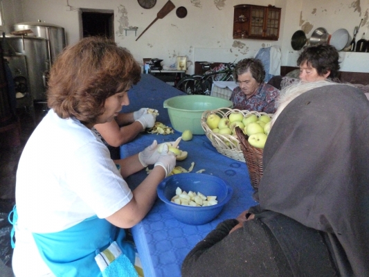 O lume não se deixa abrandar para que a “uvada” fique bem apurada. Logo que a colher de pau ”abrir estradas” dentro do doce, ele fica bom e capaz de guardar em tigelas ou tachinhos de barro. Leva canela e cravo de cabecinha quanto baste. Há quem o enfeite com bocadinhos de noz. Também há quem o faça com abóbora em vez de pêros. Para um duplo de vinho regula um cesto vindimo de pêros.”